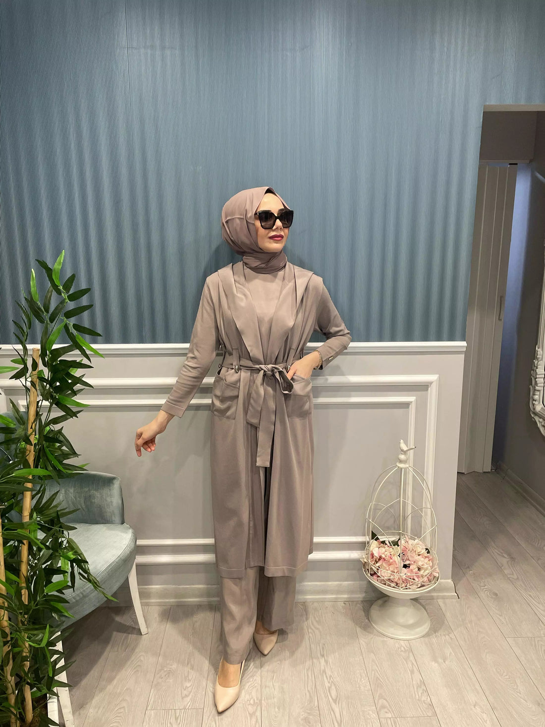 Tarzınıza hareket katacak Üç Çepli Kolları Düğme Detaylı Yandan Yırtmaçlı Önden Düğmeli Hırka modellerini şimdi...