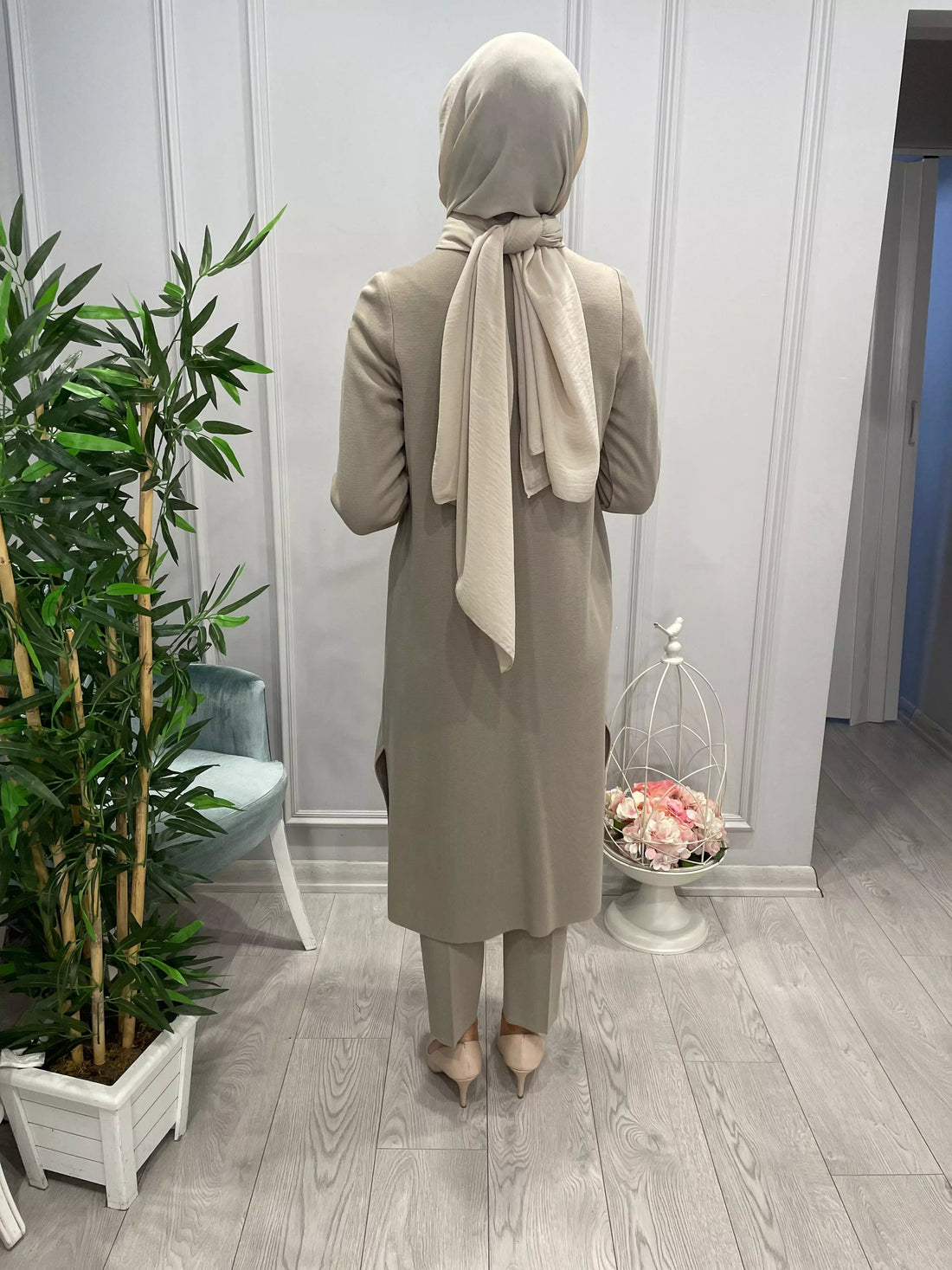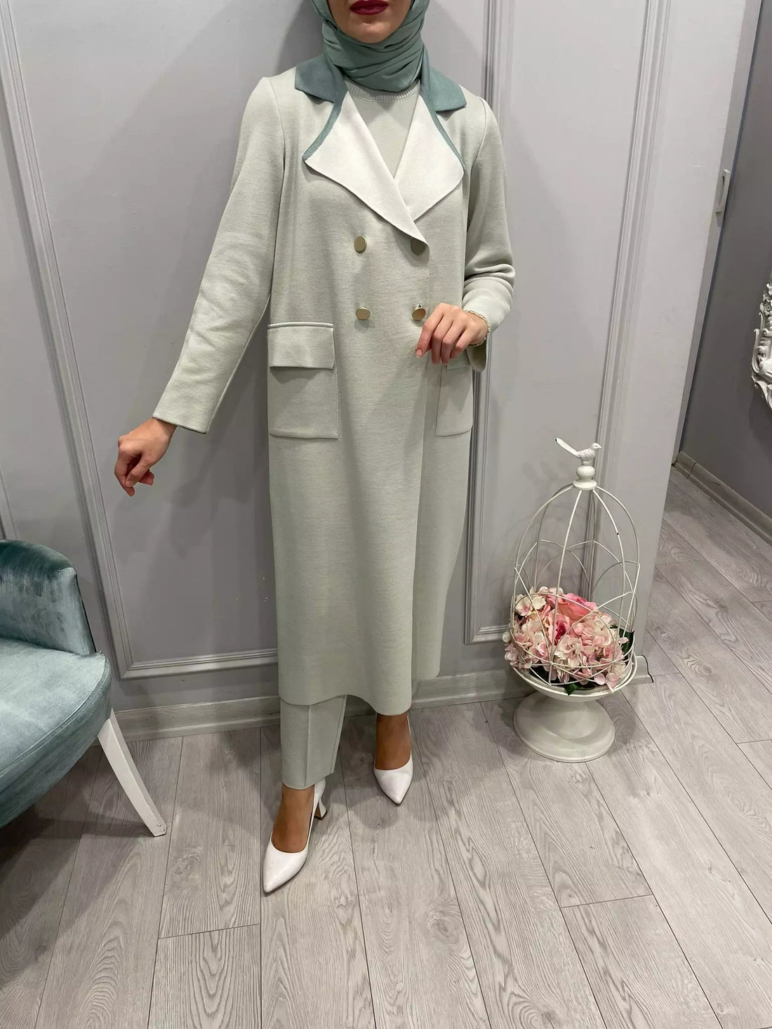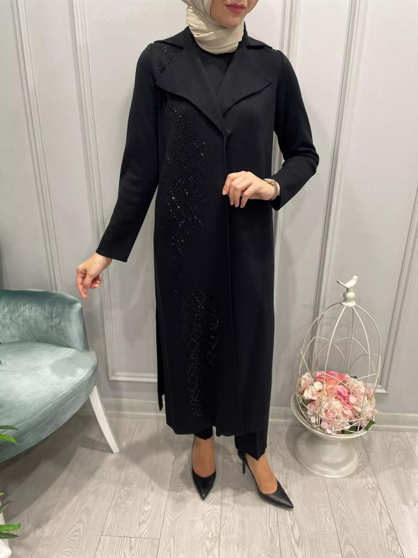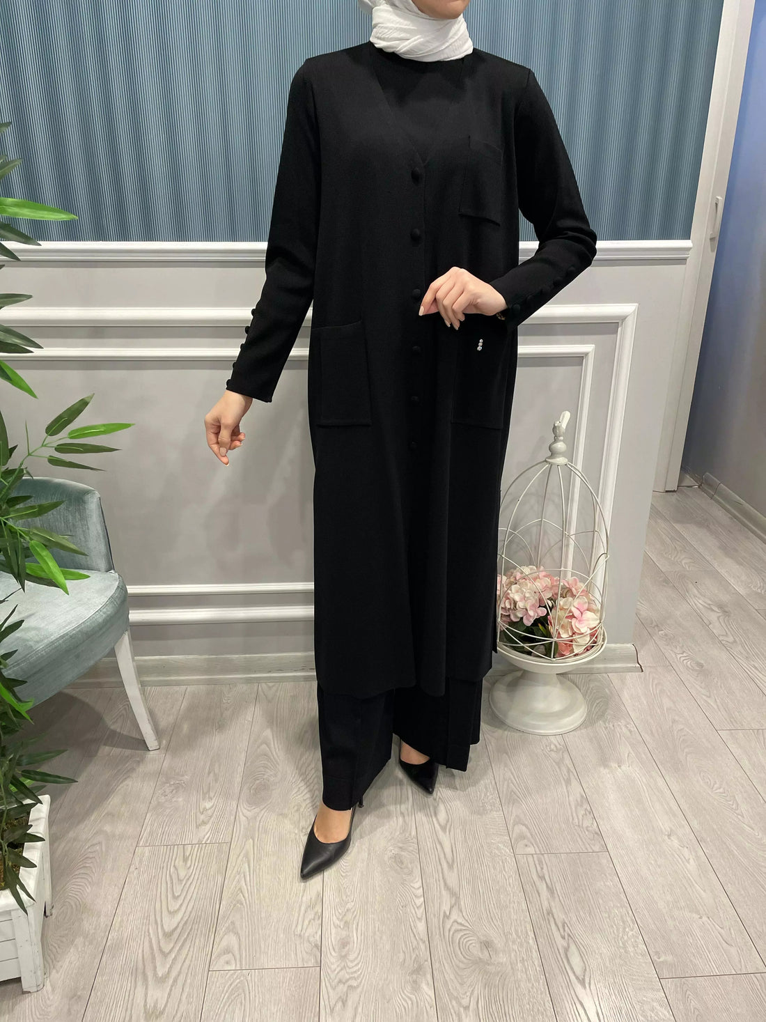 ÜÇ CEPLİ KOLLARI DÜĞME DETAYLI YANDAN YIRTMAÇLI ÖNDEN DÜĞMELİ HIRKA