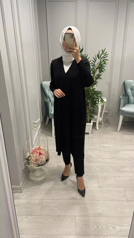 DÜĞME DETAYLI DÜZ RENK UZUN HIRKA