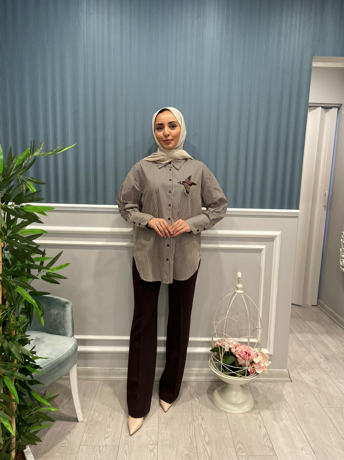 ÇİZGİLİ KUŞ ARMALI TAŞLI GÖMLEK