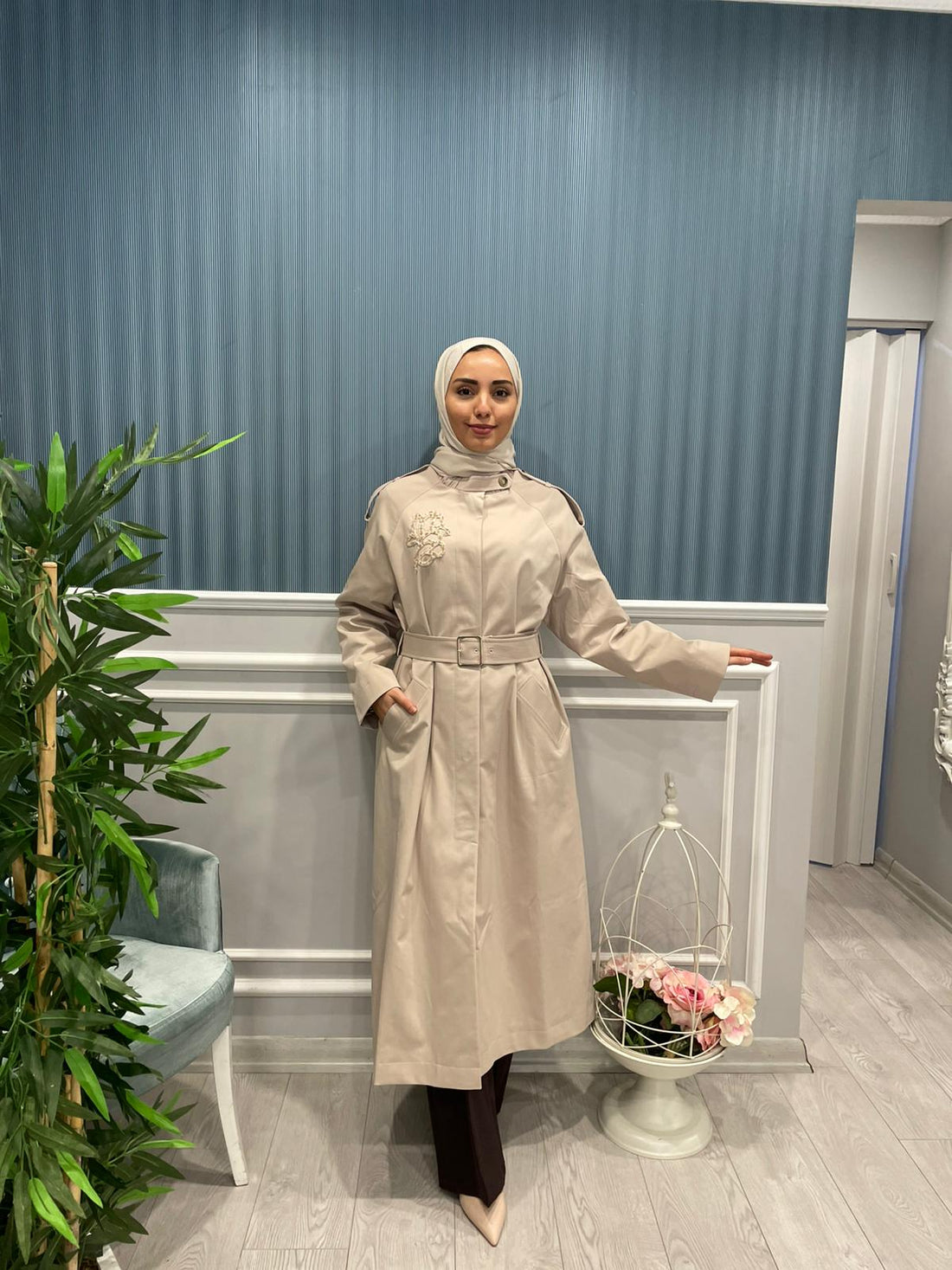 TAŞ DETAYLI KEMERLİ TRENÇKOT