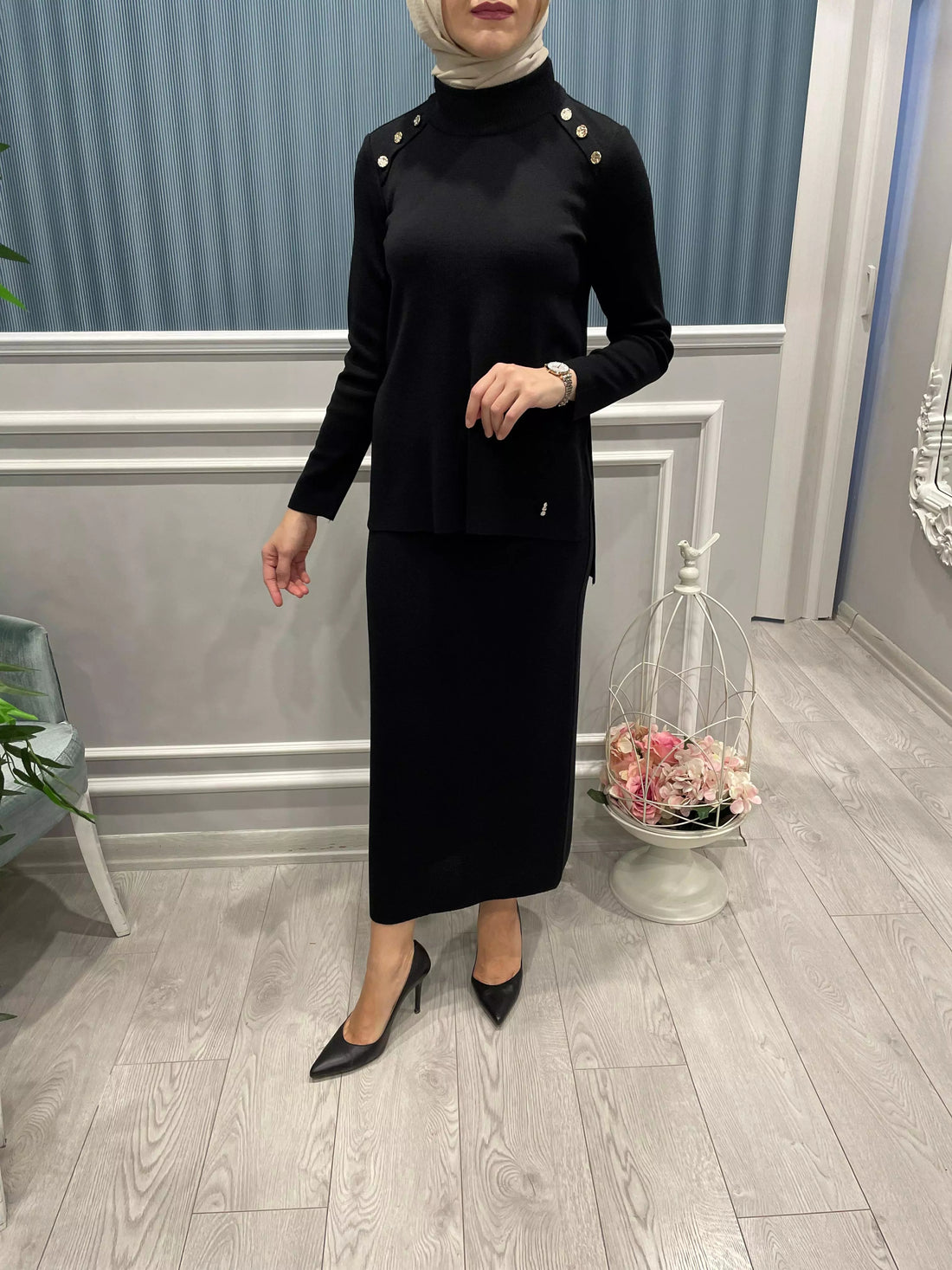 ÖNÜ DÜĞME DETAYLI TRİKO TUNİK