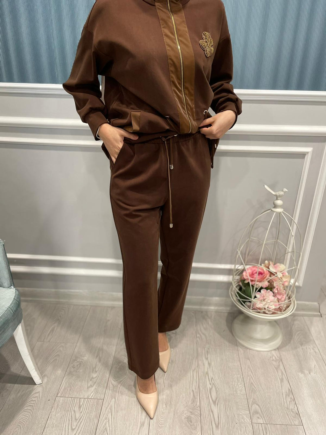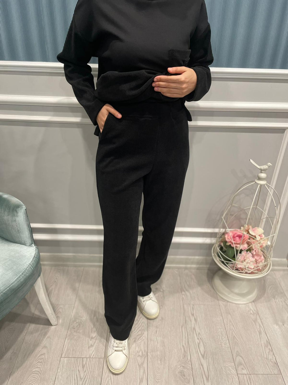 YANI ŞERİT TAŞLI TRİKO BOL PAÇA PANTOLON