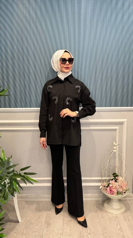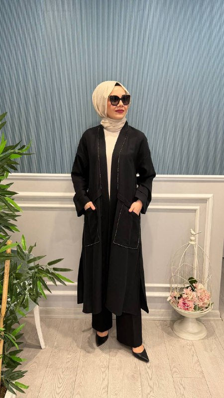 RAYON BÜYÜK CEPLİ SATEN KUPRA DETAYLI PANTOLONLU TAKIM
