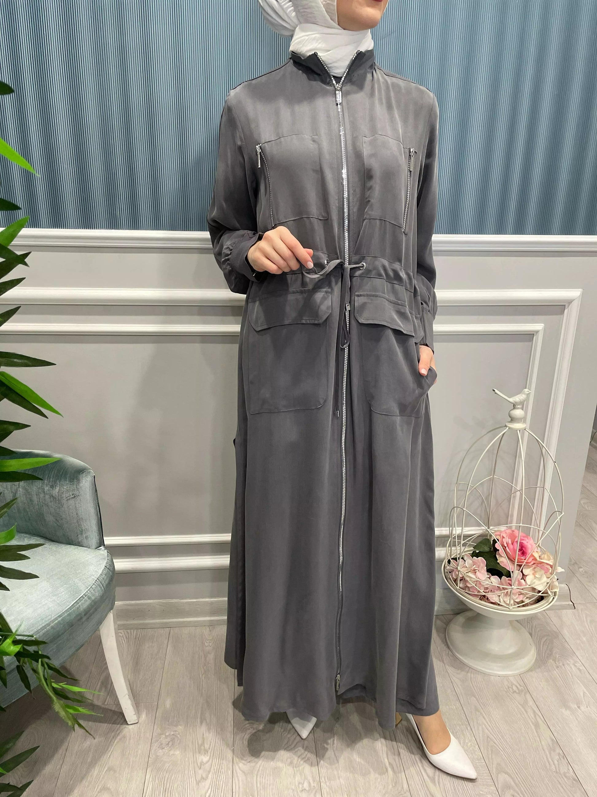 Tarzınıza hareket katacak Önden Fermuarlı Beli Büzgülü Cep Detaylı Kupra İpek Kap modellerini şimdi keşfedin ve stilinizi güçlendirin! VAVEL BUTİK de indirim fırsatlarını kaçırmayın!