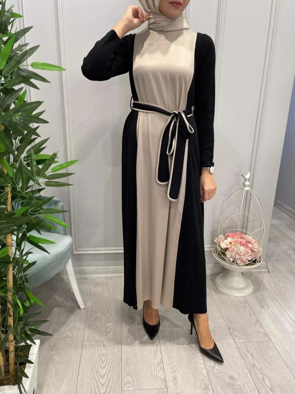 BELİ KUAŞAKLI SATEN DETAYLI ELBİSE