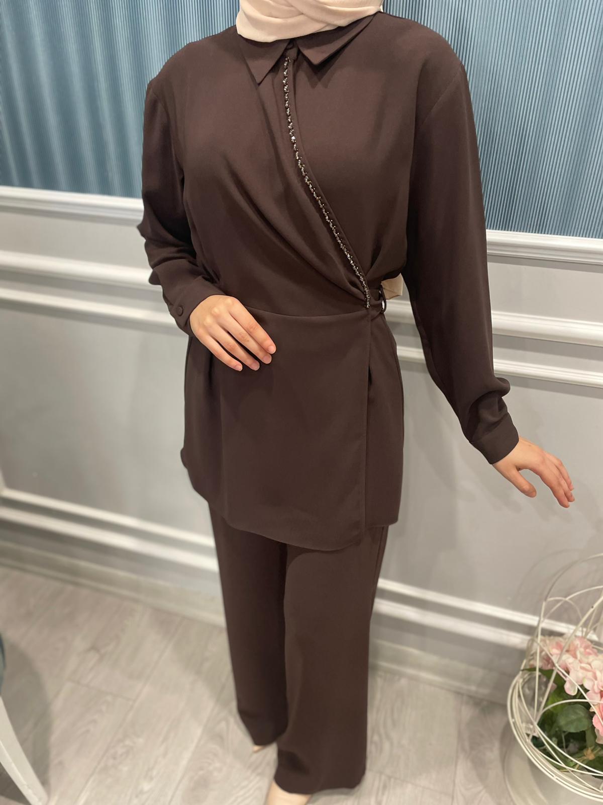 BONCUK DETAYLI BAĞLAMALI KRUVAZE TUNİK