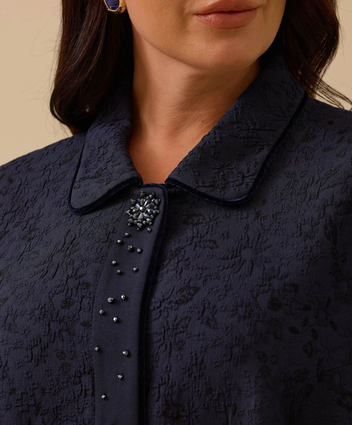 Büyük Beden Desenli Jakar Kap, zarif jakar dokusu ve rahat kalıbıyla şıklığı konforla buluşturur.