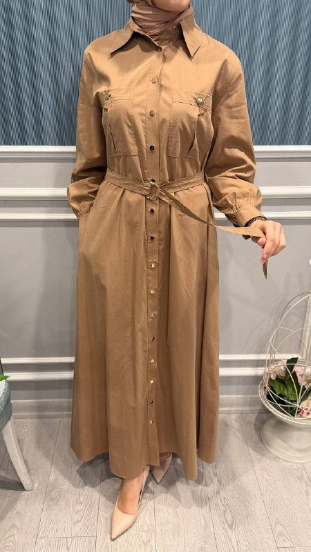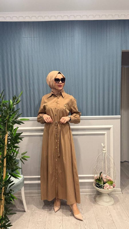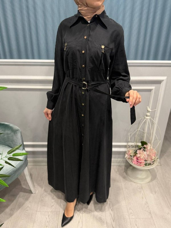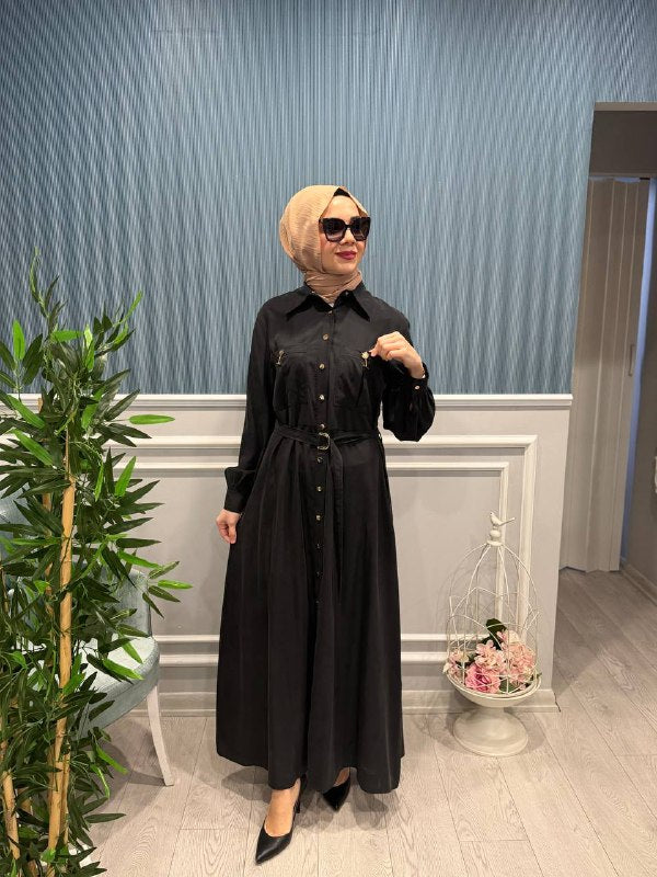 CLANDE ÇITÇIT DÜĞMELİ ÖNDEN CEPLİ ELBİSE