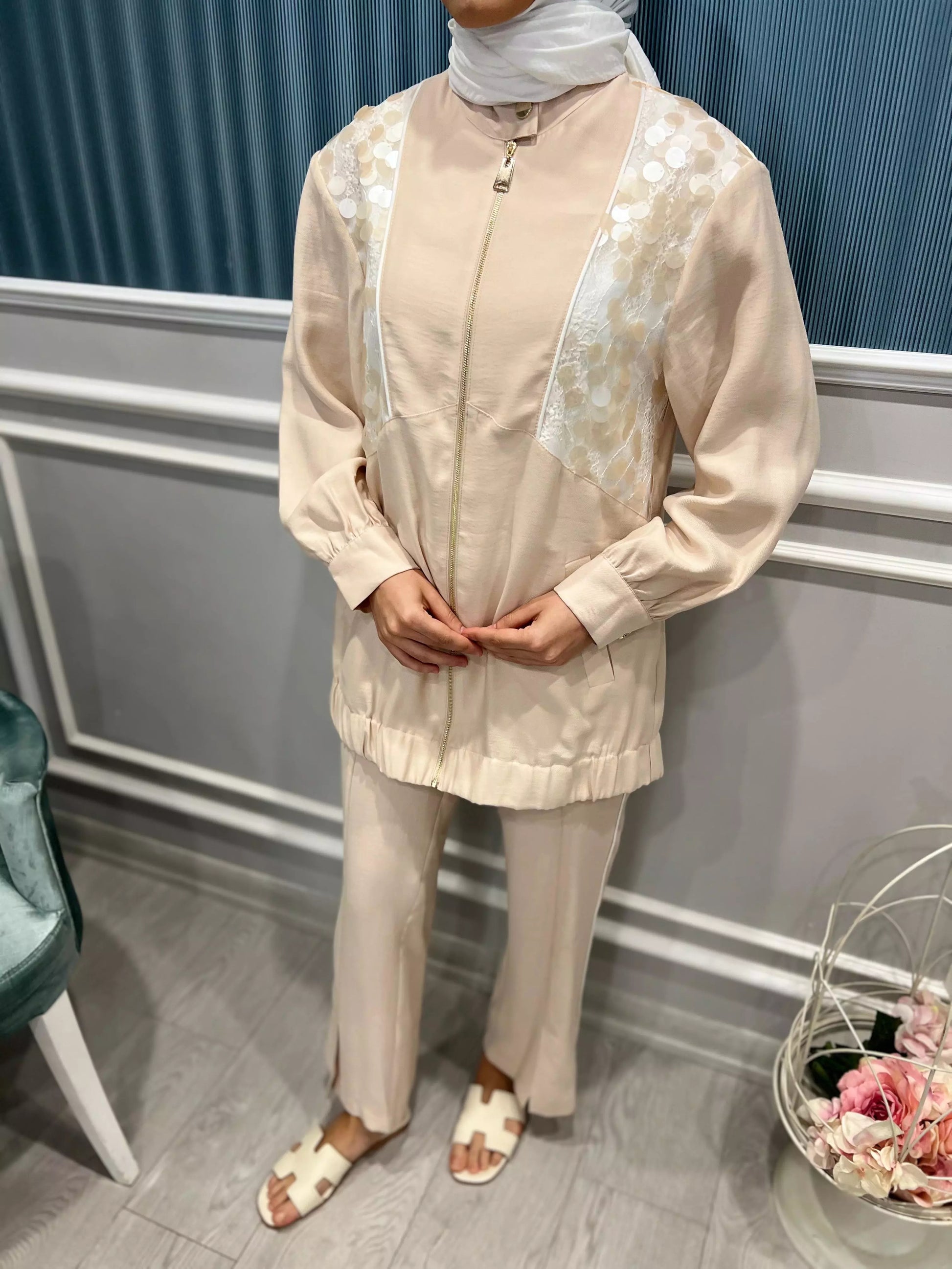 DANTEL TÜL VE BÜYÜK PULPAYETLİ DETAYLI TAKIM