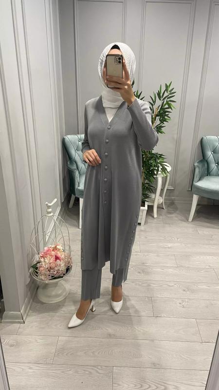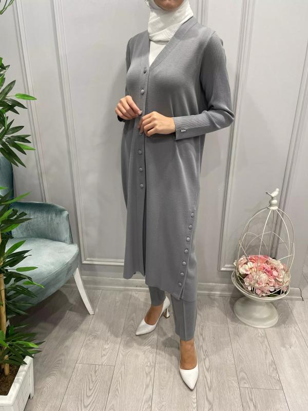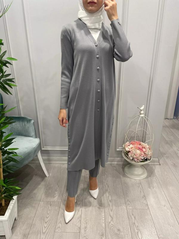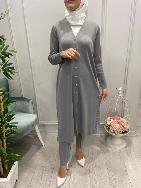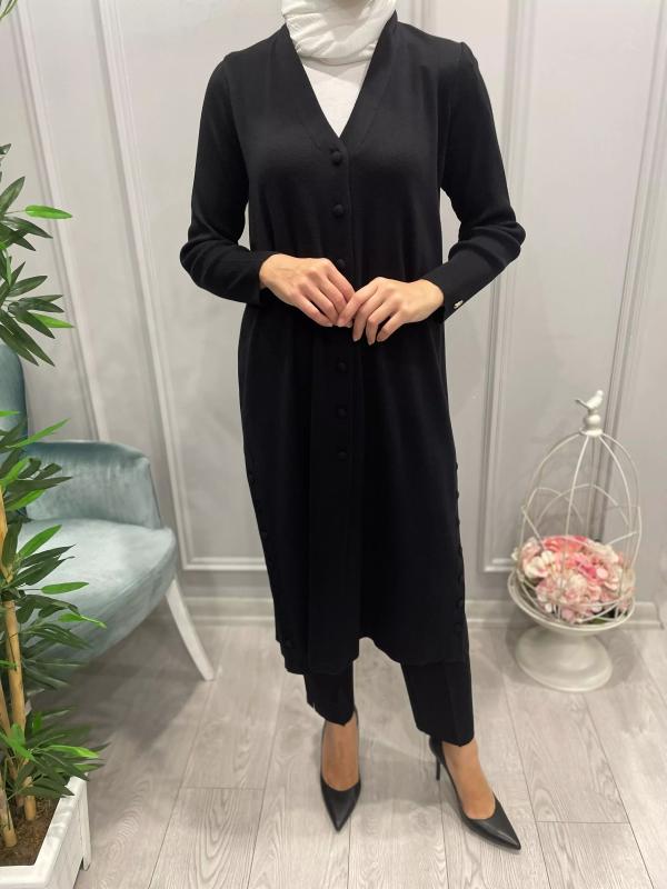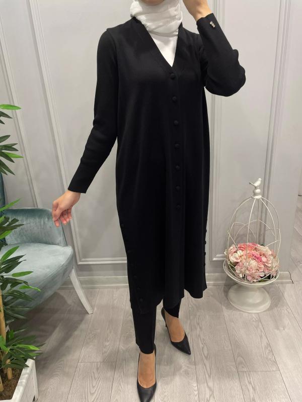 DÜĞME DETAYLI DÜZ RENK UZUN HIRKA