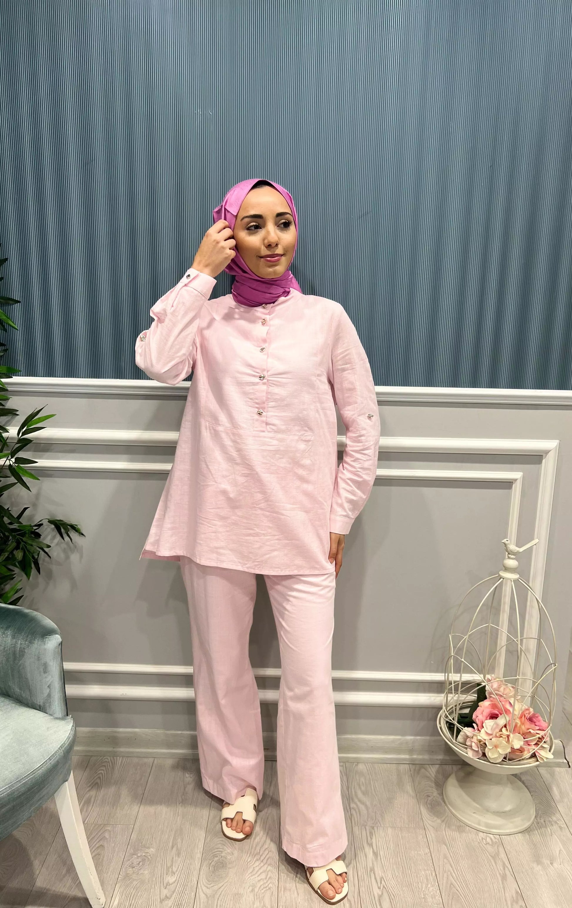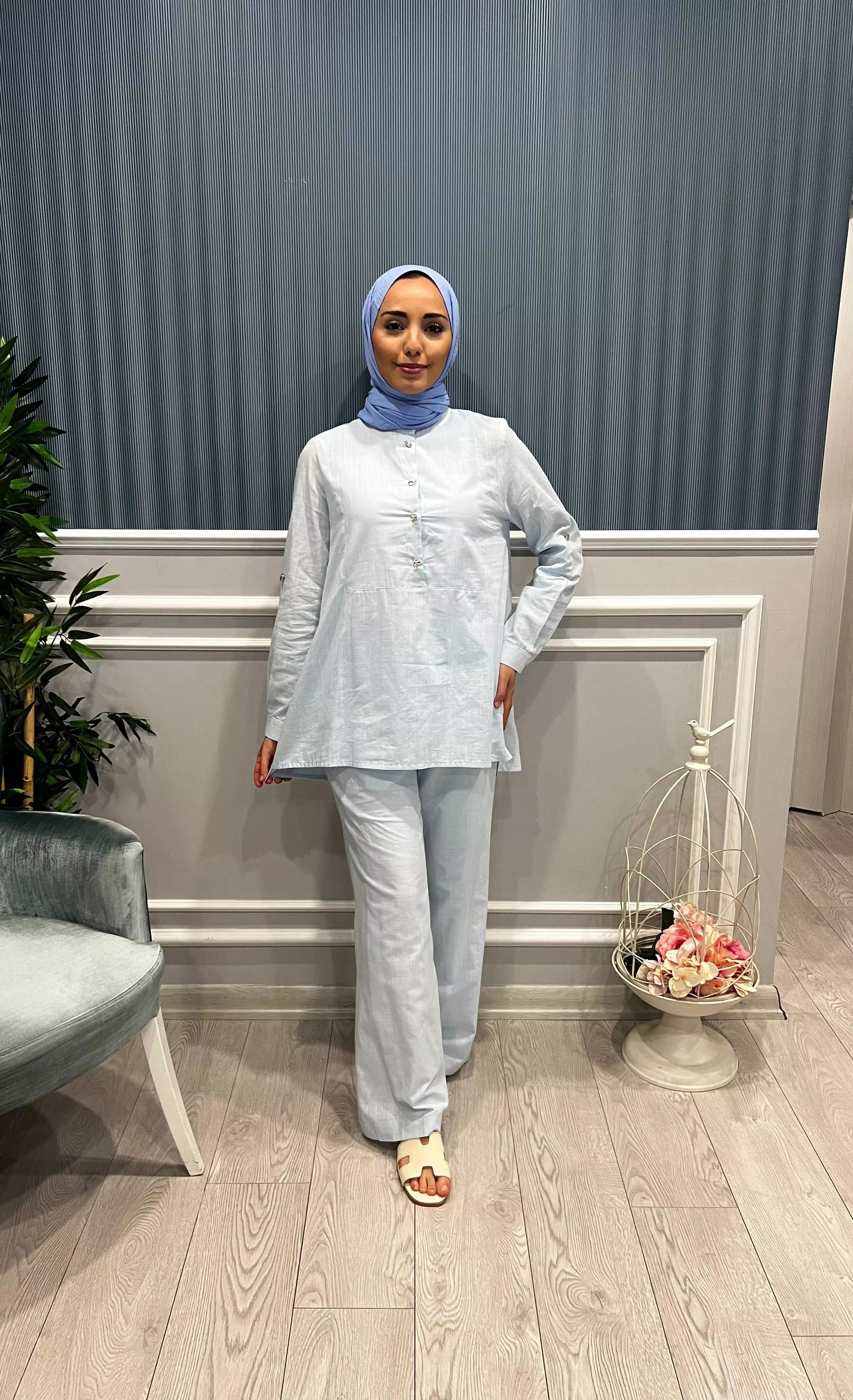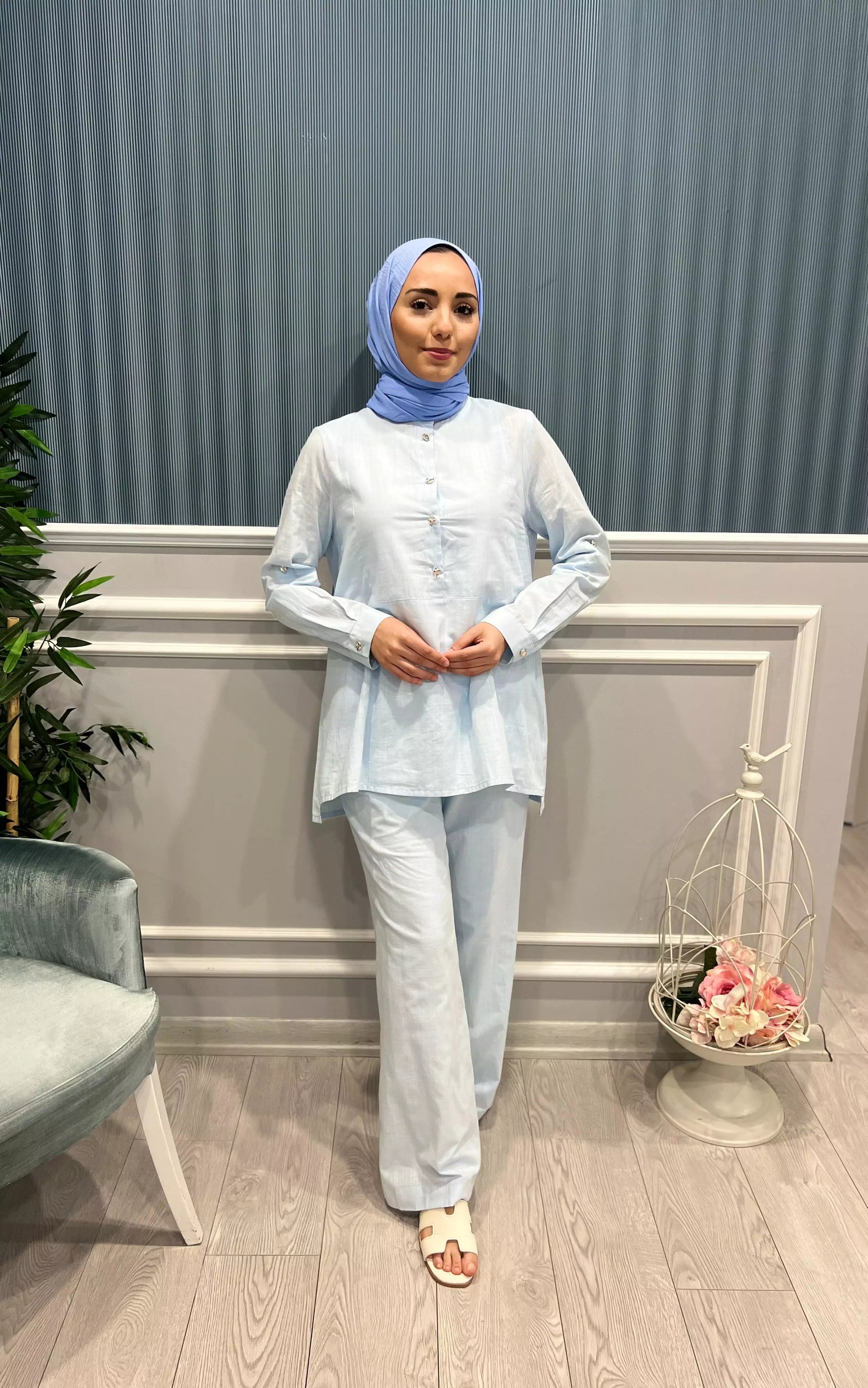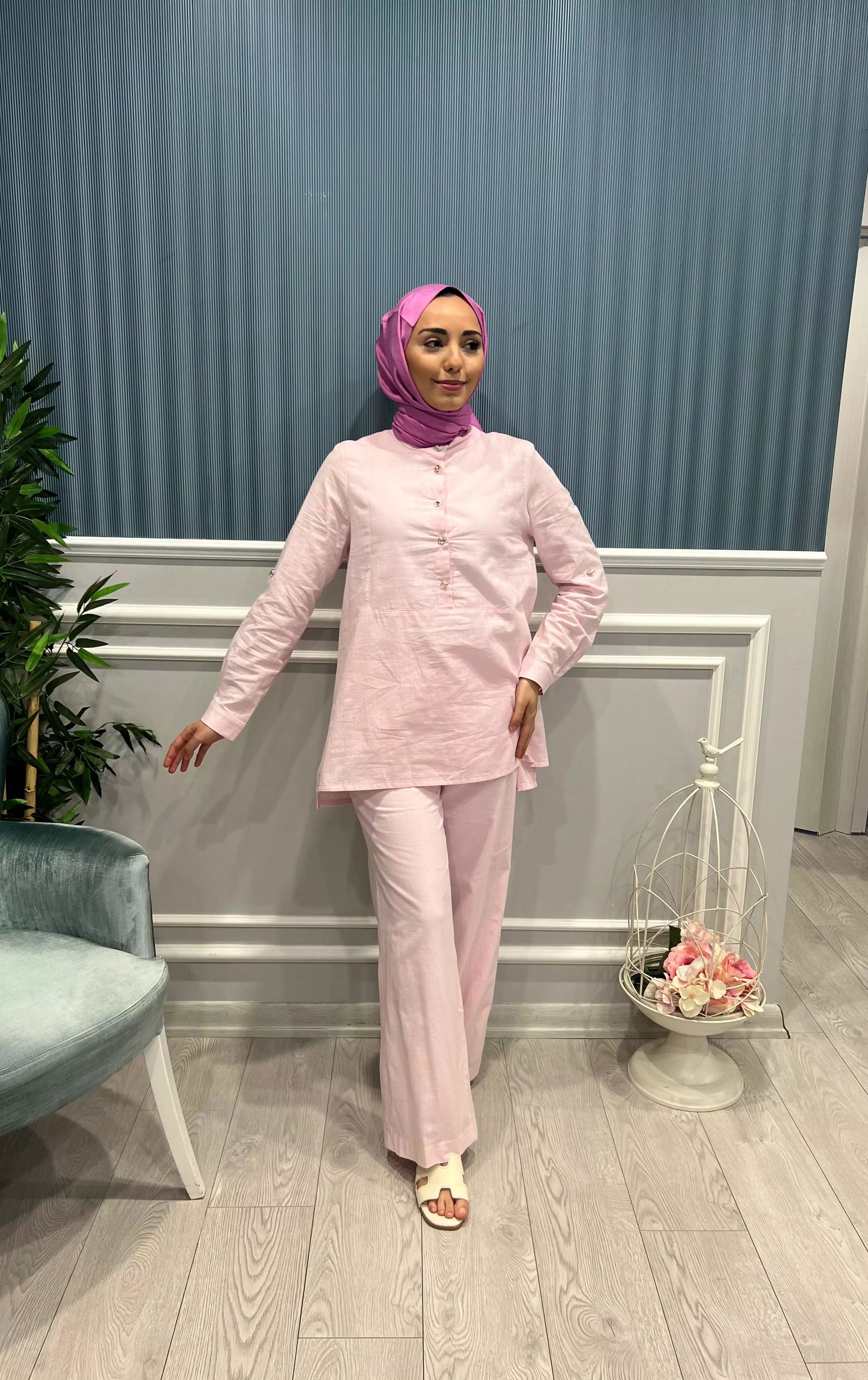 İki renk tek şıklık, Yaz aylarının vazgeçilmesi keten bu takımda hem Doğallık hem şıklık sünüyor nefes alan yapısı ve hafifliği ile sıcak havalarda konfor sağlıyor.
