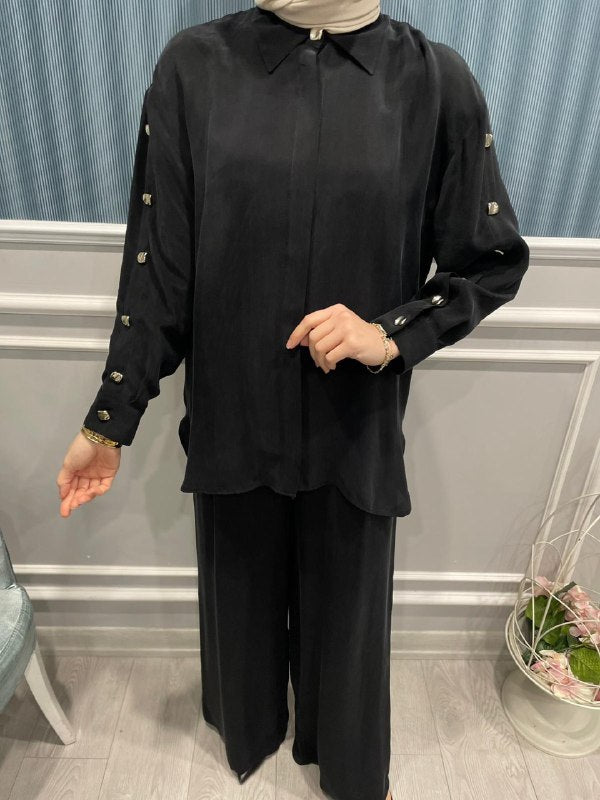 Cupra İpek Kolları Düğmeli Gömlek Her Kombine Şıklık Katar