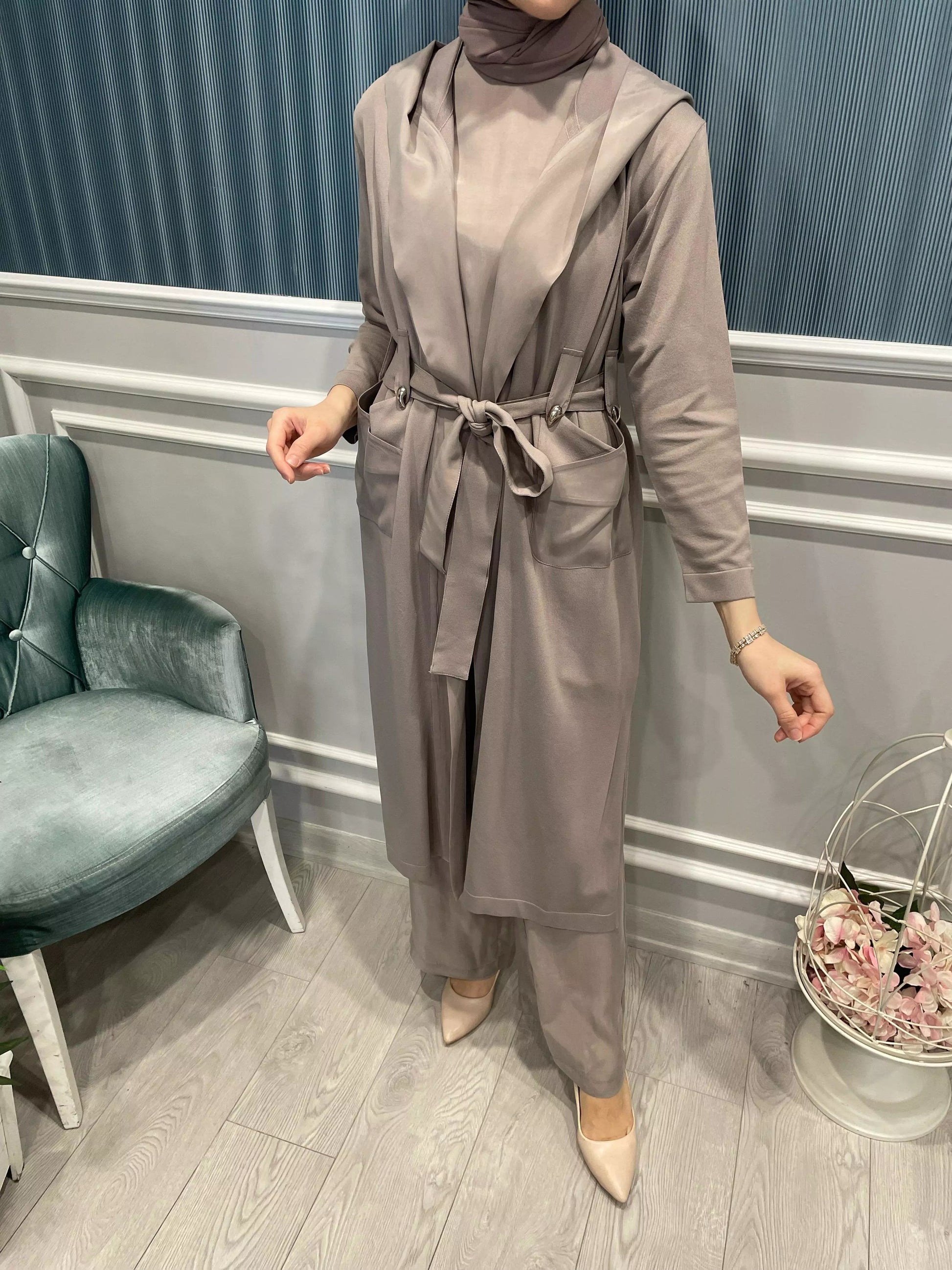 KUPRA DETAYLI BELİ KEMERLİ CEPLİ KAPŞONLU HIRKA