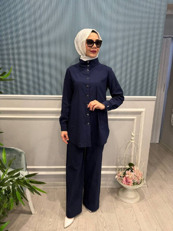 sadelik ile kendini beli eden likralı çıtçıtlı gömlek.