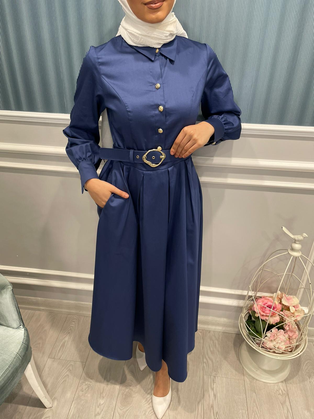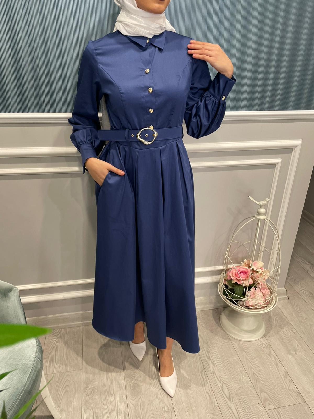 Pamuk kemerli elbise doğal kumaşın ferah ve nefes alan yapısına kemer detayıyla zarif siluete dönüştürüyor kemer detayı belinizi vurgulayarak şık bir görünüm sünüyor.
