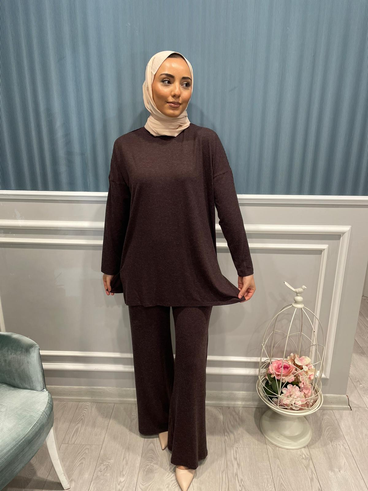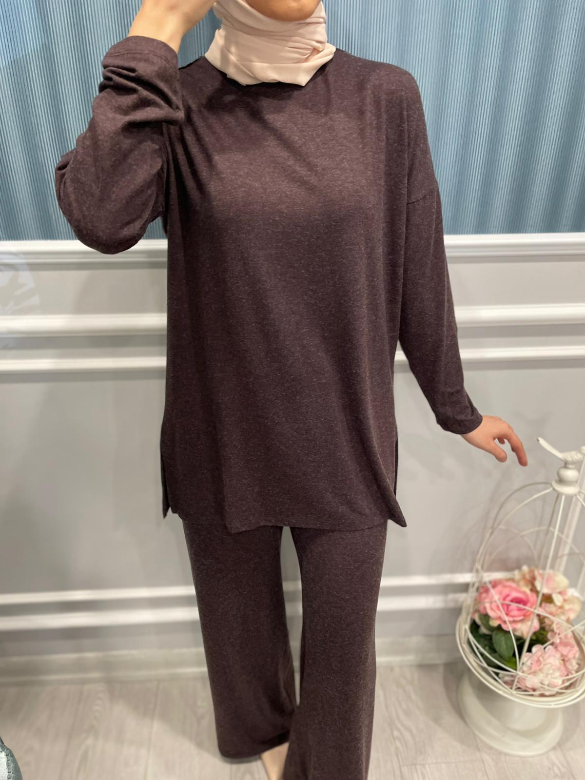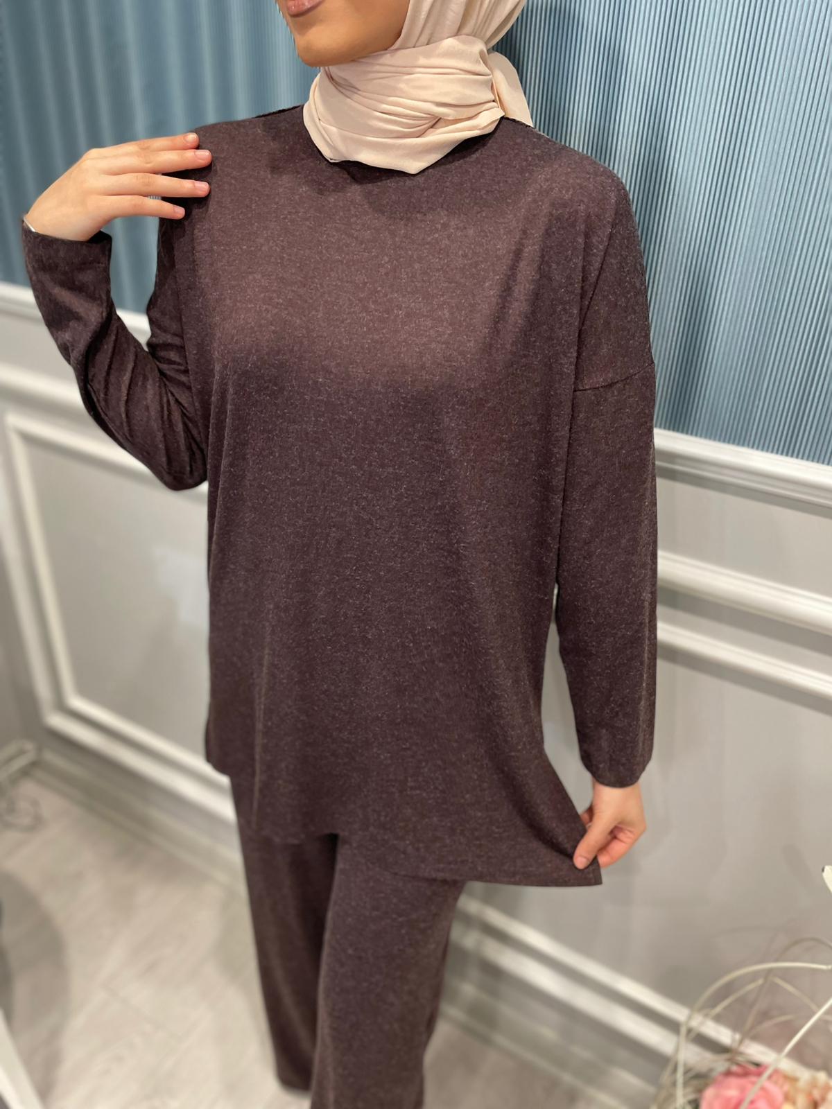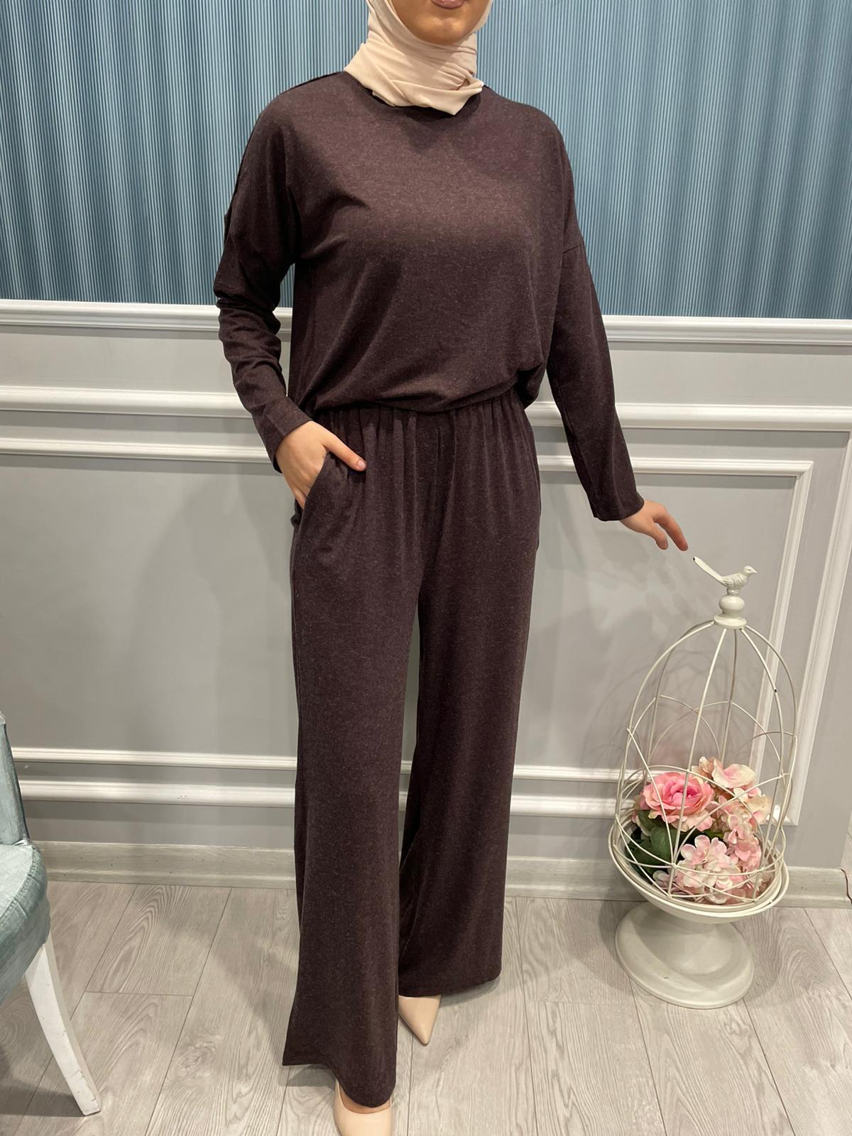 Beli lastikli pantolon takım, konforu ve şıklığı aynı potada buluşturan , zamansız bir seçim. Hem evde hem dışarda rahatça tercih edilebilecek bir kombin.