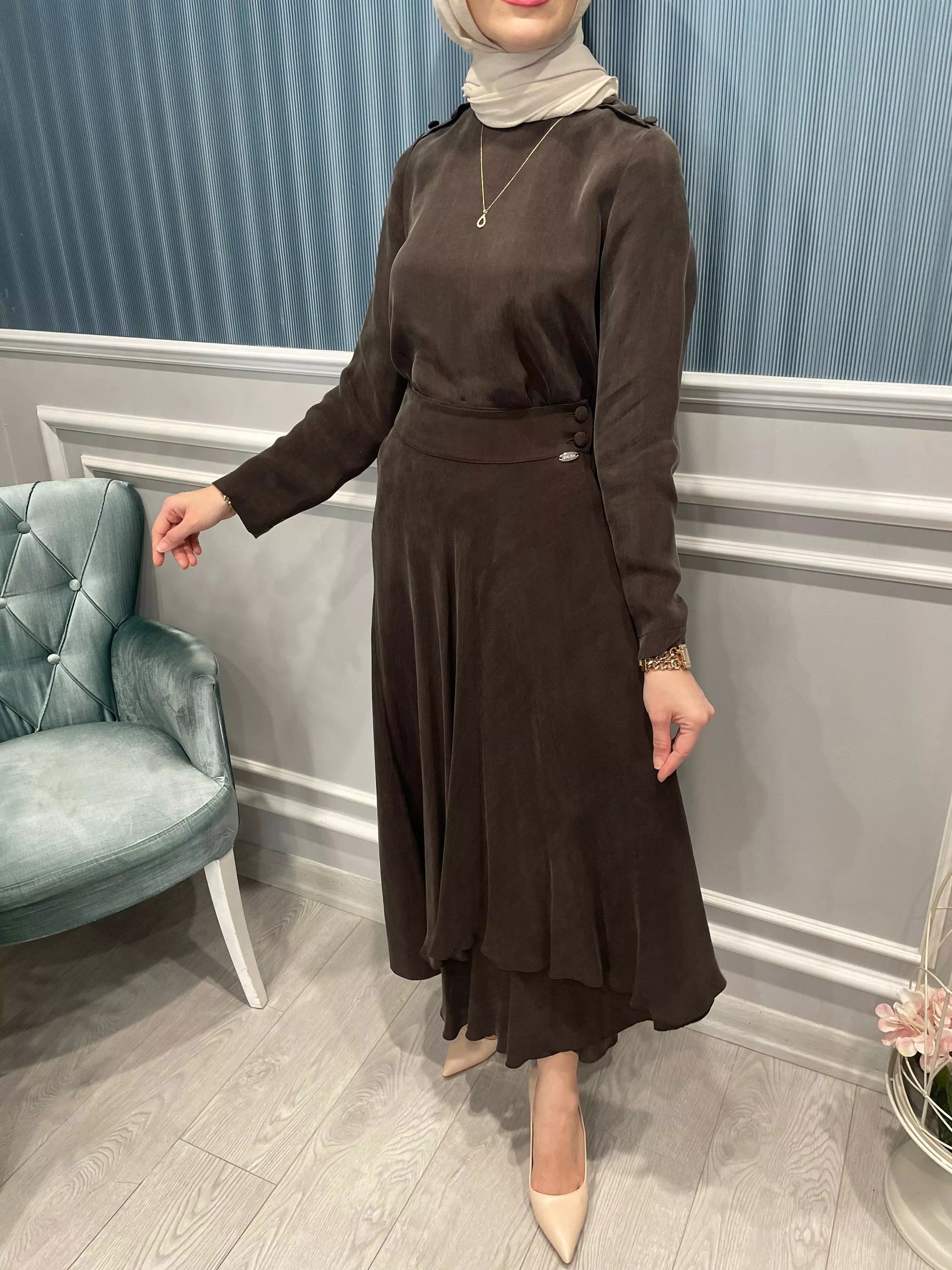 Tarzınıza hareket katacak Volan Kesim Kapak Model Kupra İpek Etek modellerini şimdi keşfedin ve stilinizi güçlendirin! VAVEL BUTİK de indirim fırsatlarını kaçırmayın!