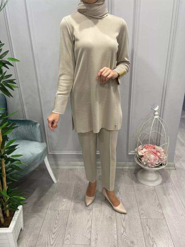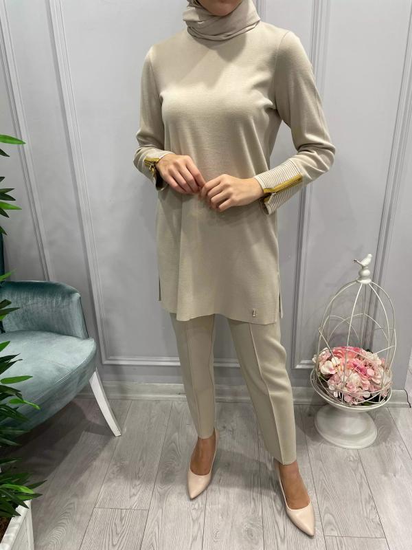 YAKASI VE BİLEĞİ BEKLETME DETAYLI TUNİK