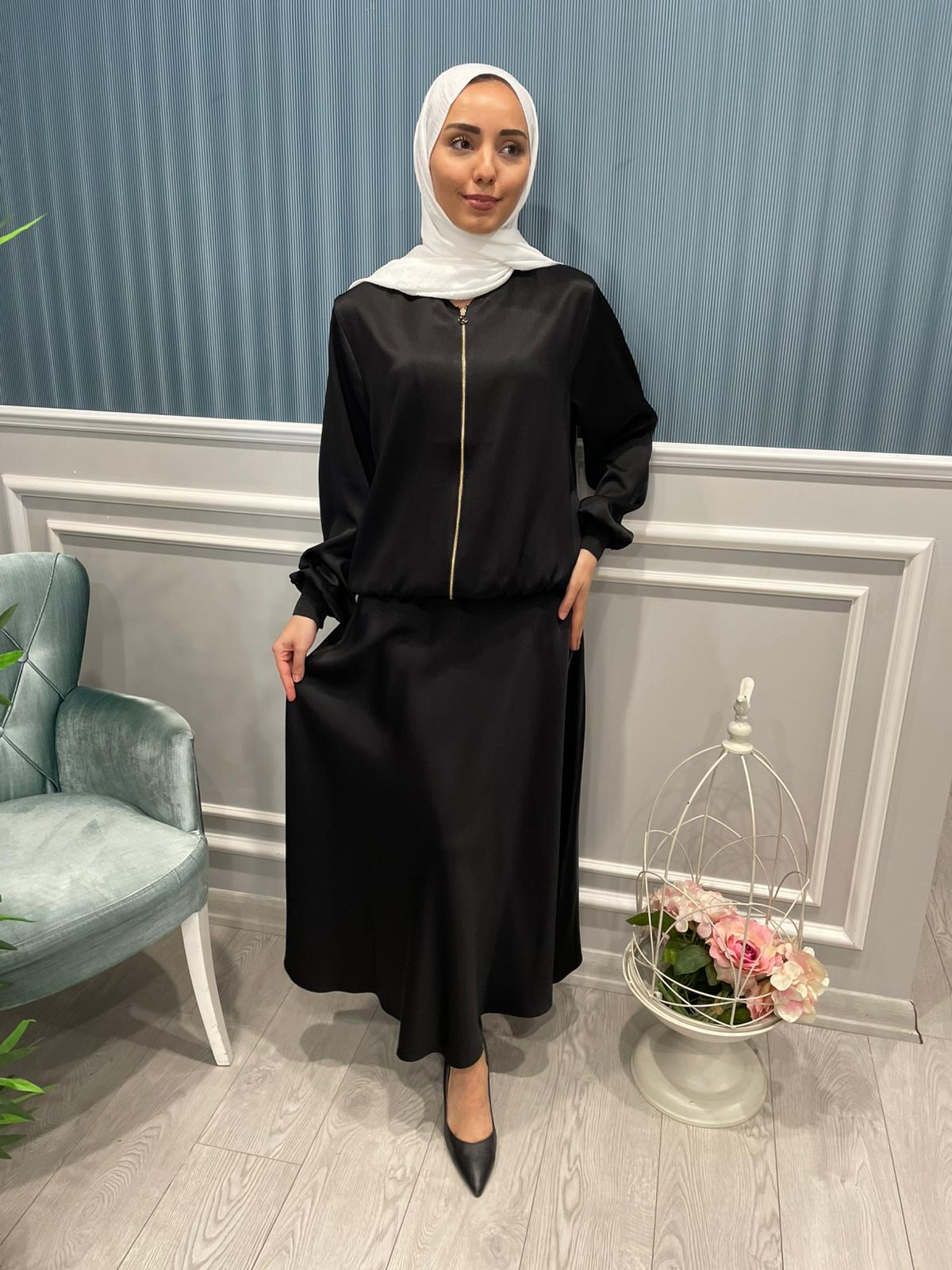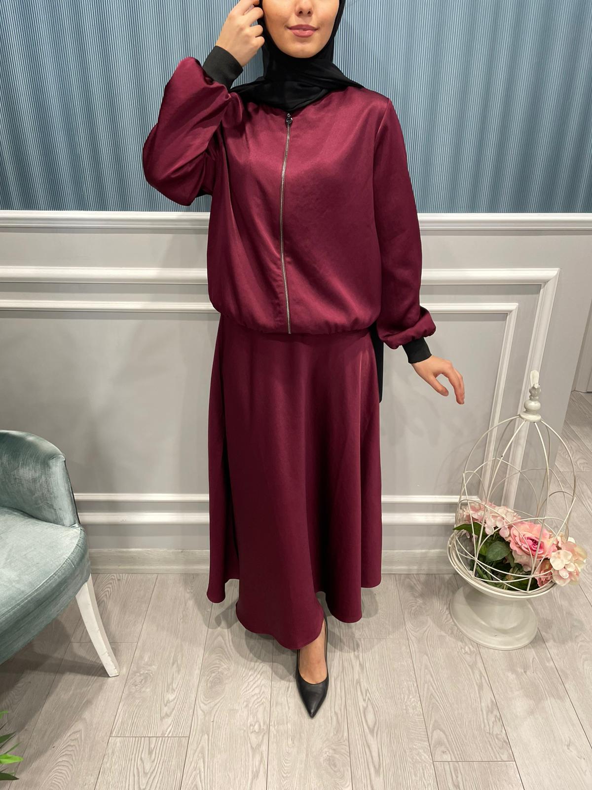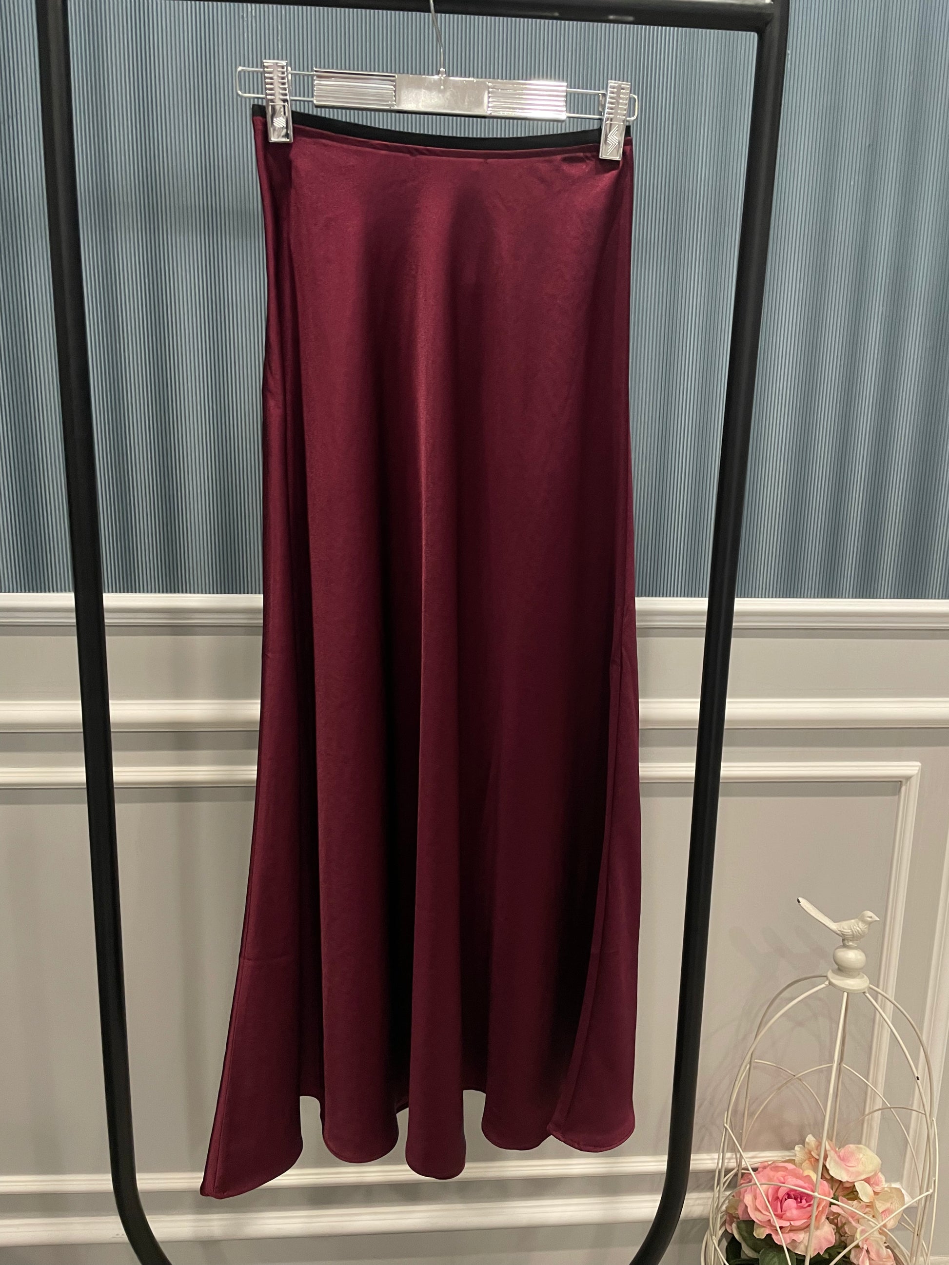 YANDAN FERMUARLI YÜKSEK BEL GROGREN DETAYLI SATEN REGULAR ETEK
