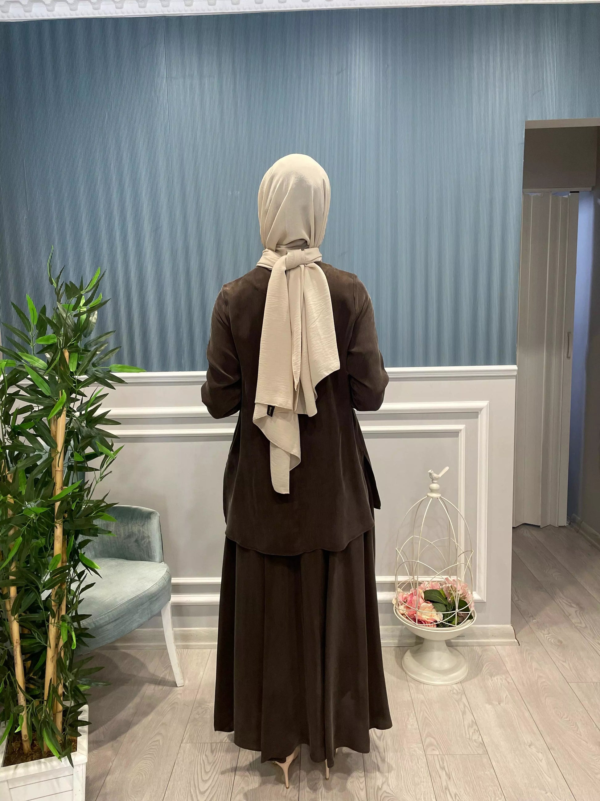 YANLARI FERMUARLI CEP DETAYLI KUPRA İPEK